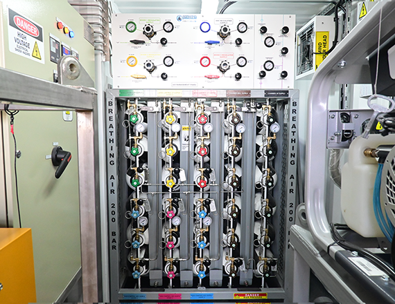 • Breathing Air Rack: 30 × 50 Ltr × 200 Bar Cylinders (Three Diver Panel)